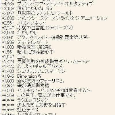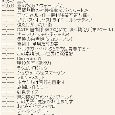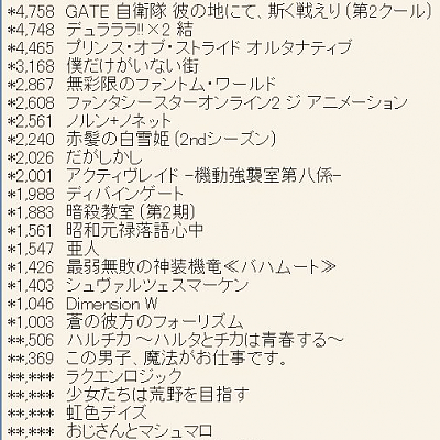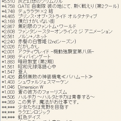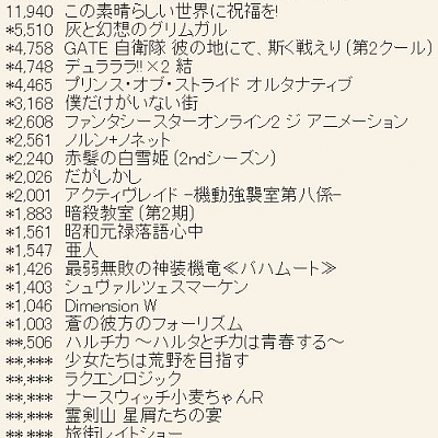 2015년 10월 신작 애니메이션 제 1권 판매량 살짝 업데이트