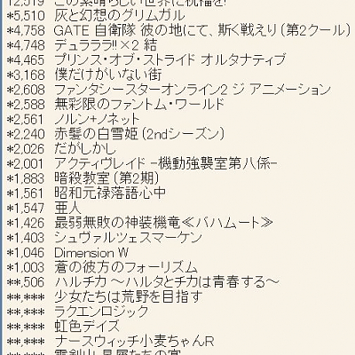 2015년 10월, 2016년 1월 애니 BD/DVD 판매량
