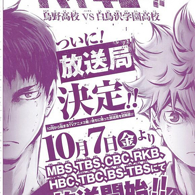 TV 애니메이션 '하이큐' 제 3기의 방송국 정보가 나온 모양입니다.