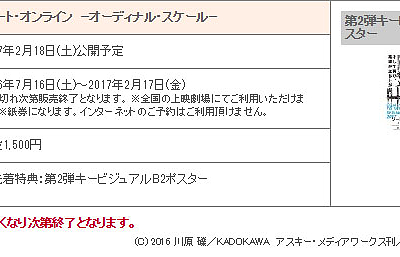 극장판 '소드 아트 온라인'의 개봉 예정일이 2017년 2월 18일이라는 소문