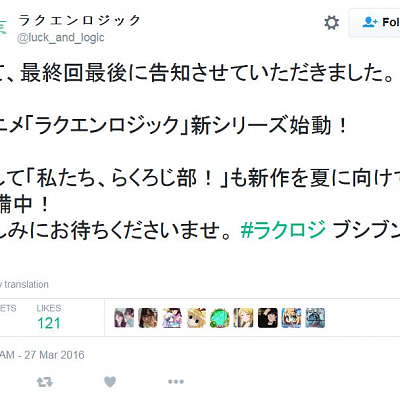 TV 애니메이션 '럭 앤 로직' 새로운 시리즈, 공식 트위터에서 정식 공지