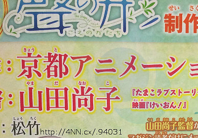 극장 애니메이션 '목소리의 형태'는 교토 애니메이션 제작, 야마다 나오코 감독