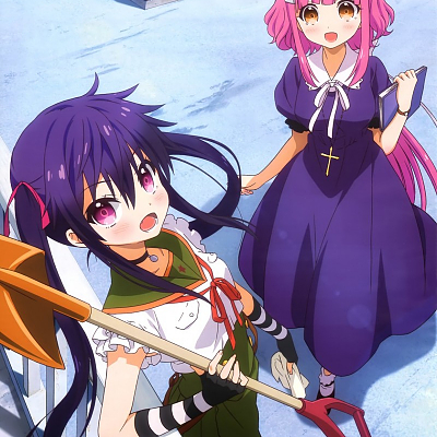 애니메이션 '학교생활!'의 잡지 일러스트, 쿠루미와 메구미의 조합