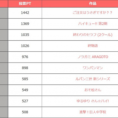 가장 기대하고 있는 2015년 가을 애니메이션 TOP20 앙케이트 결과