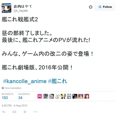 2016년에 '함대 컬렉션' 극장판 애니메이션이 나온답니다.