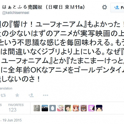 만화가 다나카 케이이치씨, '울려라! 유포니엄'과 '교토 애니메이션'을 극찬