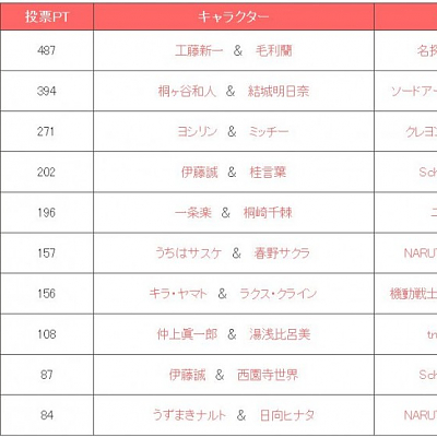 빨리 헤어졌으면 하는 애니메이션 만화의 커플 TOP10 앙케이트 결과