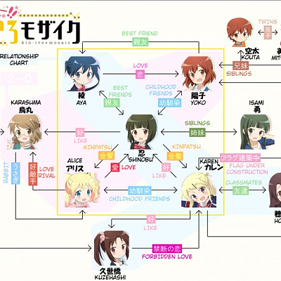 애니메이션 '헬로! 금빛 모자이크' 캐릭터 상호관계도