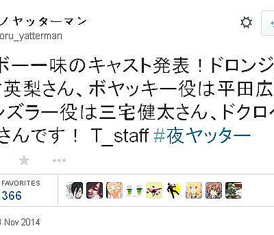 2015년 1월 신작 '밤의 얏타맨' 성우 캐스팅 일부 발표