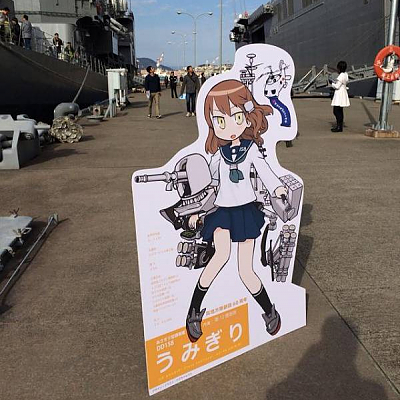 일본 해상자위대 함정 공개 행사에서 함께 전시된 일러스트 패널