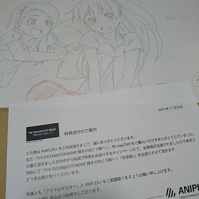 아이돌마스터 극장판 구입 특전 원화 인증 사진이 귀엽네요.