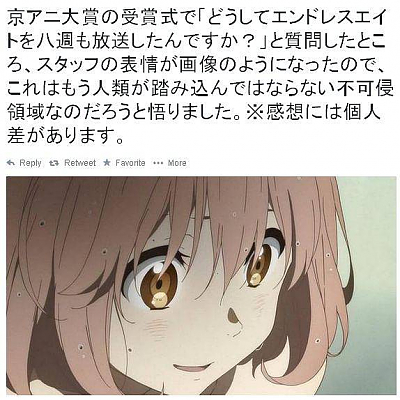 경계의 저편 작가가 교토 애니메이션 대상 시상식에서 관계자에게 던진 질문