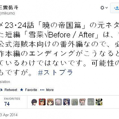 스트라이크 더 블러드 원작자, 애니메이션 마지막 2화에 대해 언급
