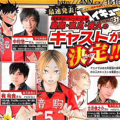 '하이큐'에 성우 나카무라 유이치, 카지 유우키, 타치바나 신노스케 추가 캐스팅