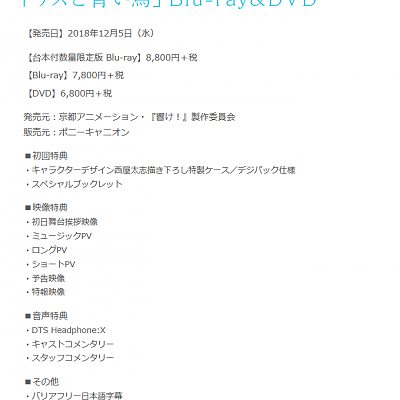 극장판 애니메이션 '리즈와 파랑새' 블루레이 & DVD 발매 소식