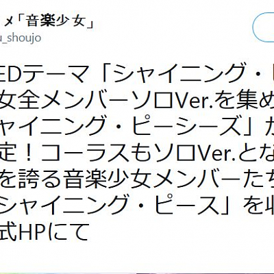 TV 애니메이션 '음악소녀' 캐릭터송 앨범 발매 소식
