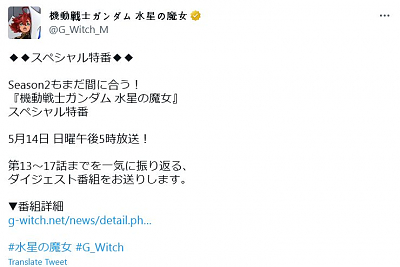 TV 애니메이션 '기동전사 건담 수성의 마녀 시즌2' 스페셜 프로그램 방송 소식