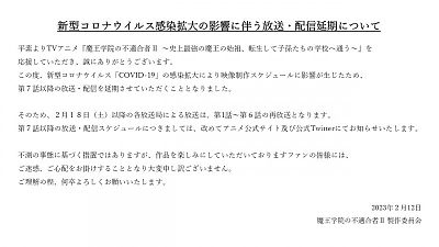 TV 애니메이션 '마왕학원의 부적합자' 제 2기 방송 연기 발표