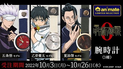 극장판 주술회전0, 작중 캐릭터를 모티브로 하는 손목시계 3종류 발매