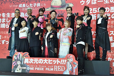 극장 애니메이션 '원피스 필름 레드'의 개봉 기념 무대 인사가 개최된 모습