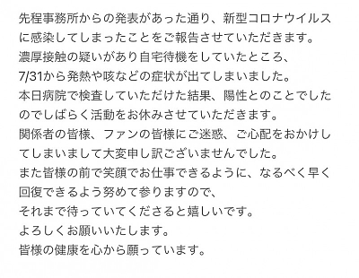 성우 히노 사토시가 신종 코로나 바이러스에 감염되었다고 합니다.