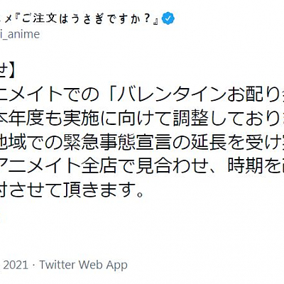 '주문은 토끼입니까' 애니메이트에서의 발렌타인 배포회 개최 보류 결정