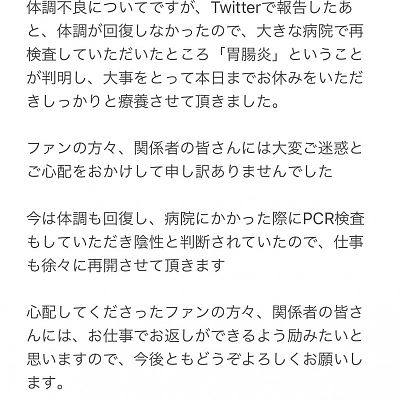 성우 키토 아카리, 큰 병원에서 재검사를 받은 결과 '위장염'이어서 한동안 쉬었답니다.
