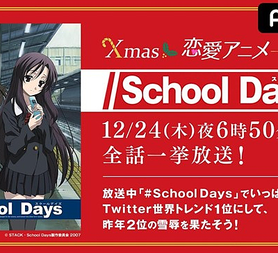 2020년 12월 24일, ABEMA에서 TV 애니메이션 '스쿨데이즈' 전편 온라인 방송 실시