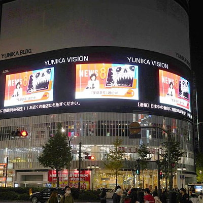 만화 '괴수 8호'의 프로모션 영상이 신주쿠 유니카 비전에서 방영 개시