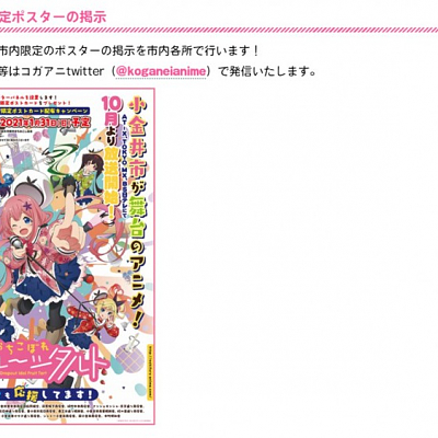 TV 애니메이션 '뒤떨어진 후르츠 타르트'와 작품의 무대인 코가네이시의 콜라보레이션 결정