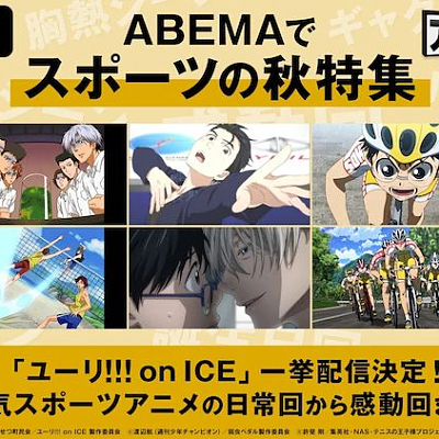 애니메이션 '유리!!! on ICE'의 전편 일거 방송이 ABEMA에서 실시될 예정