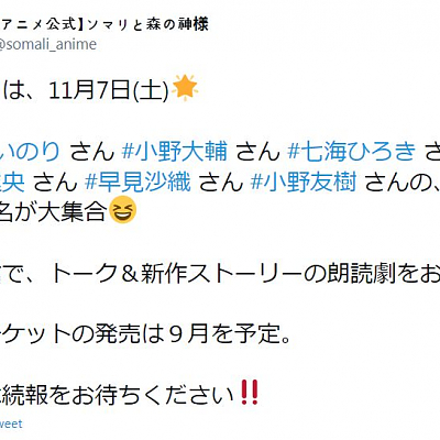TV 애니메이션 '소말리와 숲의 신' 온라인 이벤트 개최 예정