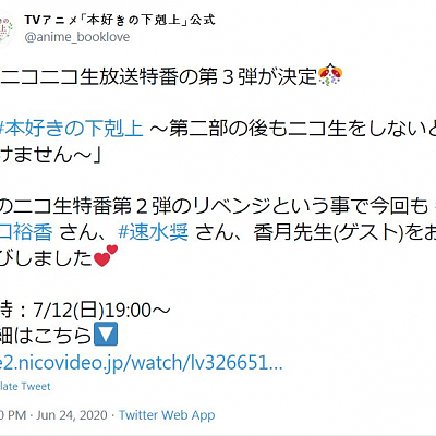 TV 애니메이션 '책벌레의 하극상' 제 2부의 웹 특별 프로그램 방송 소식