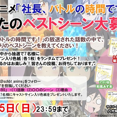 TV 애니메이션 '사장님, 배틀의 시간입니다!'의 성우진 사인이 당첨되는 캠페인 실시중