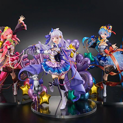 애니메이션 '리제로'의 캐릭터 에밀리아, 렘, 람의 아이돌 복장 피규어 발매 소식