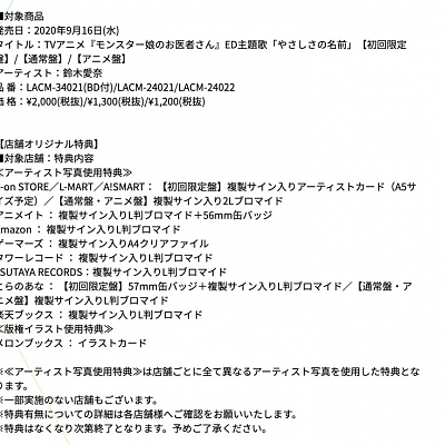 성우 스즈키 아이나의 1st 싱글, 2020년 9월 16일에 발매될 예정