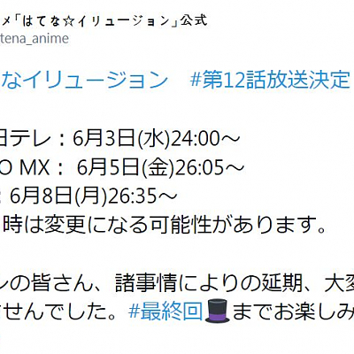 애니메이션 '하테나 일루전'의 최종화인 제 12화의 방송 스케쥴 발표