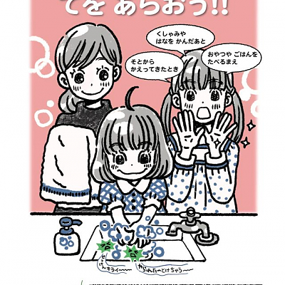 만화가 '우미노 치카'씨가 손씻기의 중요성을 홍보하는 내용의 일러스트를 그렸답니다.