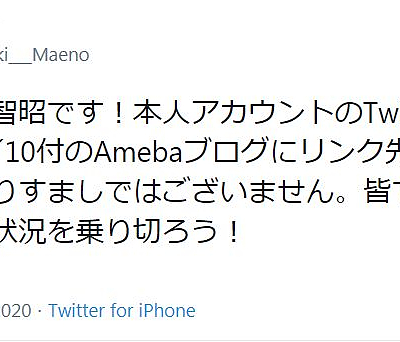 성우 마에노 토모아키가 2020년 4월 10일에 트위터 계정을 개설한 모양입니다.