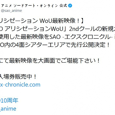 '소드 아트 온라인'의 체험형 전시 이벤트에서 애니메이션 최신 영상이 선행 상영 예정
