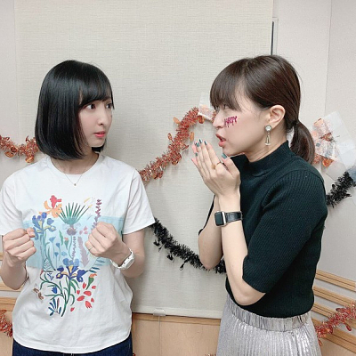 성우 사쿠라 아야네 & 오오니시 사오리의 사진, 할로윈 분위기를 내려고 노력한 듯?