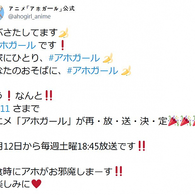 애니메이션 '바보걸'이 일본 BS11에서 2019년 10월 12일부터 재방송