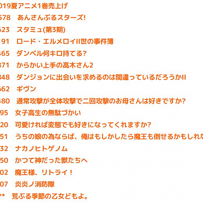 2019년 7월 (여름) 시즌 애니메이션 블루레이 & DVD 제 1권 판매량 랭킹