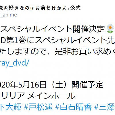 TV 애니메이션 '나를 좋아하는 건 너뿐이냐' 스페셜 이벤트 개최 소식