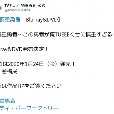 TV 애니메이션 '신중용사' 블루레이가 2020년 1월 24일부터 전 3권으로 발매될 예정