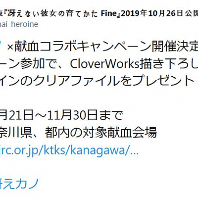 '극장판 시원찮은 그녀를 위한 육성방법 Fine'와 콜라보레이션한 헌혈 캠페인 개최