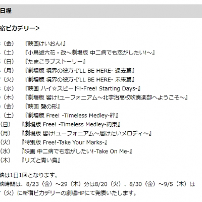 일본의 쇼치쿠, 교토 애니메이션의 극장 애니메이션 특집 상영 계획 발표