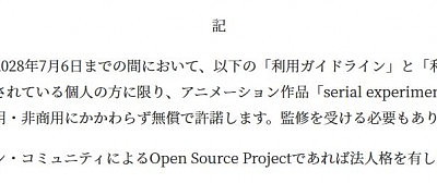 애니메이션 'serial experiments lain'의 상업적 이용까지 가능한 2차 창작 가이드라인 공개