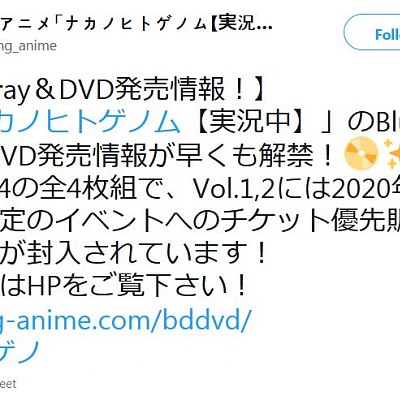 TV 애니메이션 '안쪽의사람게놈 [실황중]'의 블루레이 발매 정보