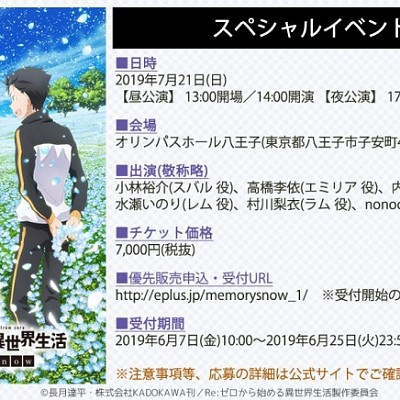 리제로 OVA 스페셜 이벤트 관련 구체적인 정보 공개